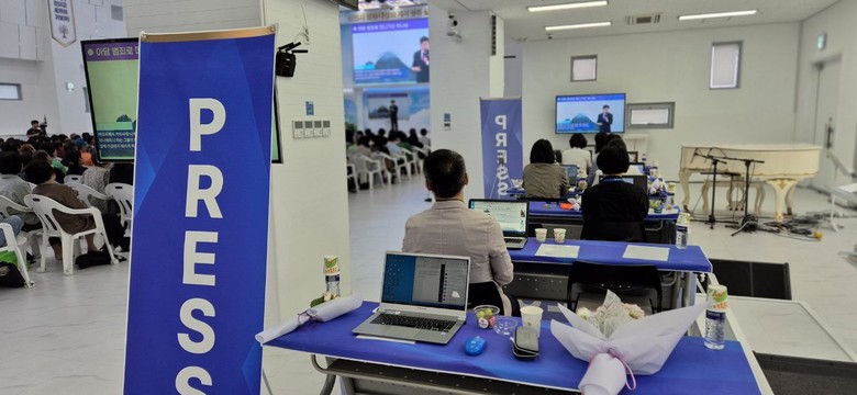 신천지 전주교회에서 참석자가 강연을 경청하고 있다.