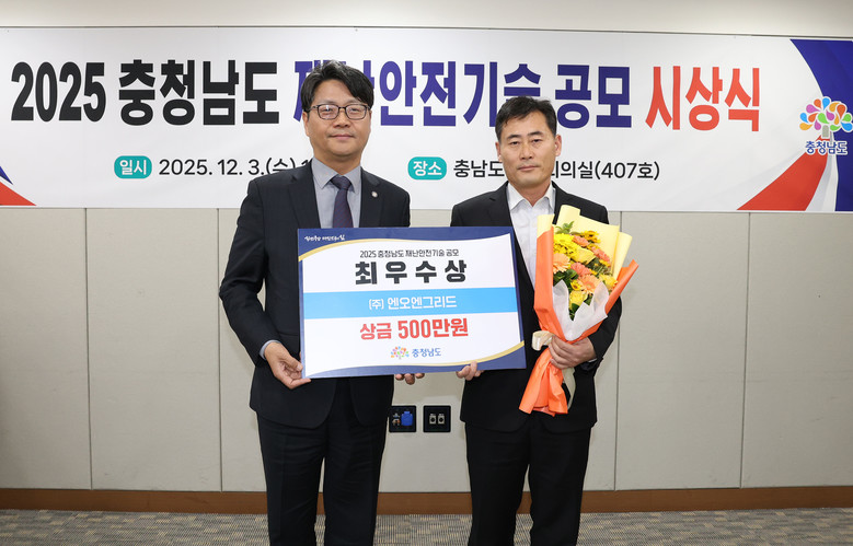 도는 3일 도청 소회의실에서 신동헌 도 자치안전실장, 수상자 등 20여 명이 참석한 가운데, ‘2025년 재난안전기술 공모 시상식’을 개최했다.