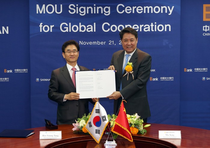 한편 신한은행은 세계 20개국에 147개 네트워크를 보유하고 특히 중국 내 17개 지점을 운영하고 있으며, 중국 광대은행은 최근 서울지점을 설치하는 등 글로벌 시장 진출에 나서고 있다.