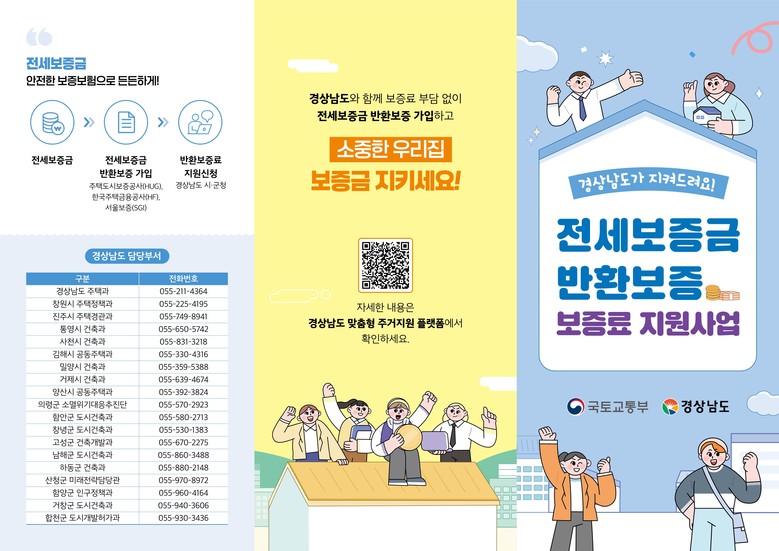 - 무주택 임차인 대상 소득·보증금 기준 충족 시 지원 [세계타임즈=경남 최성룡 기자] 경상남도는 청년층 주거안정과 전세사기 예방을 위해 추진 중인 ‘전세보증금 반환보증 보증료 지원사업’의 정책 체감도를 높이고자 연중 홍보를 강화한다.