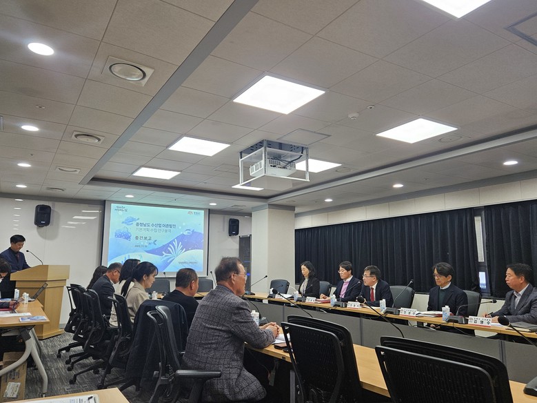 도는 19일 도청 별관 회의실에서 전형식 도 정무부지사를 비롯해 도 및 보령·서천·태안군 공무원, 전문가, 어업인 대표, 용역기관 관계자 등 10여 명이 참석한 가운데, ‘충남 수산업 어촌발전기본계획’ 연구용역 1차 중간보고회를 개최했다.