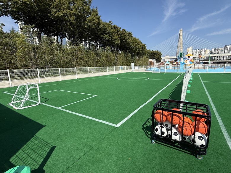 가족풀의 ‘신천 문화마당’에는 1인용 소파와 파라솔, 다양한 도서를 갖춘 ‘북 쉼터’, 그리고 놀이 블럭과 풋살 골대, 농구 골대를 둔 ‘참여광장’이 운영된다.