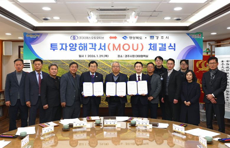 이날 협약식에는 경상북도 이남억 공항투자본부장, 경주시장, 경주시의원, ㈜티에스오토모티브 민규현 대표 등 20명이 참석해 투자계획을 공유하고 상호 협력 의지를 다졌다.