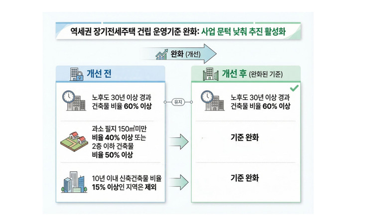 - (165호) 역세권 장기전세주택 대상지 기준 완화…노후도 기준 완화로 사업대상지 확대 기대
