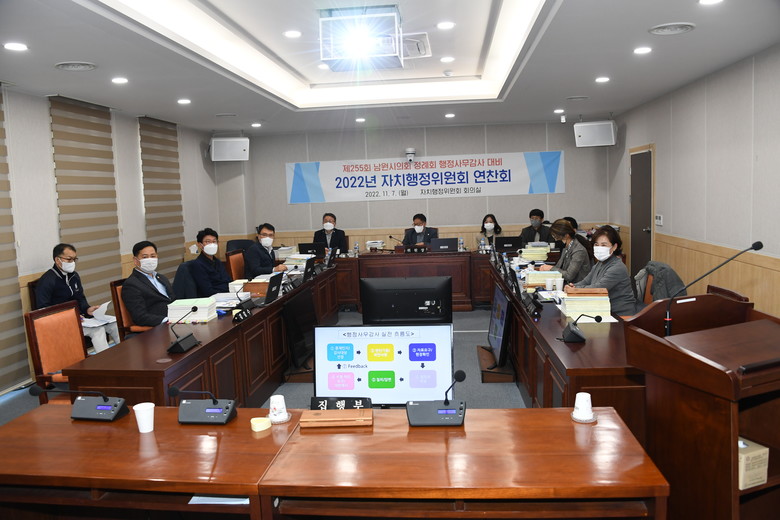 [남원 = 세계타임즈 = 임하영 기자] 지난 7일 남원시의회 자치행정위원회(위원장 김정현)는 자치행정위원회 회의실에서 의원들의 전문성과 의정역량을 높이고 내실 있는 행정사무감사를 위한 연찬회를 실시했다.
