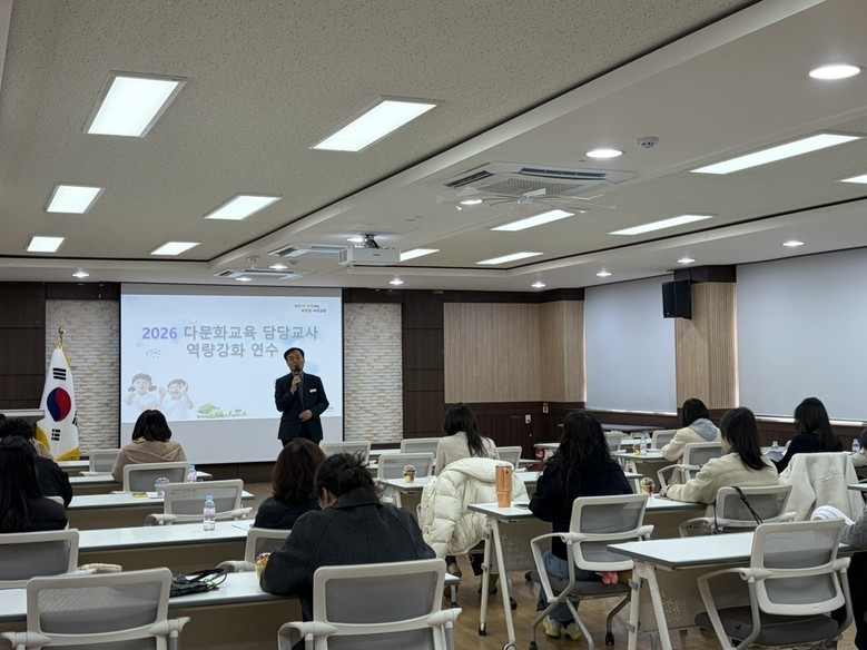 [아산시 세계타임즈=이현진 기자] 아산교육지원청(교육장 신세균)은 2월 26일(목) 아산교육지원청 대회의실에서 관내 밀집학교 및 한국어학급 운영교 소속 통합학급 담임교사 및 다문화교육 업무 담당 교사, 한국어학급 담당 교사를 대상으로 다문화 감수성 함양과 현장 전문성 강화를 위한 교사 연수를 실시했다.