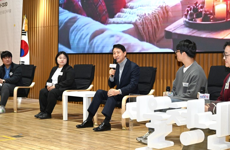 | ▲ 오세훈 서울시장이 22일(월) 고립·은둔청년 지원사업 성과공유회에서 열린 청년·부모와의 대화에서 감사와 응원의 메시지를 전하고 있다. |