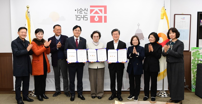 | ▲ 왼쪽부터 박용철 강화군수, 소화지 대한노인회 중구지회장, 김길성 서울 중구청장 |
