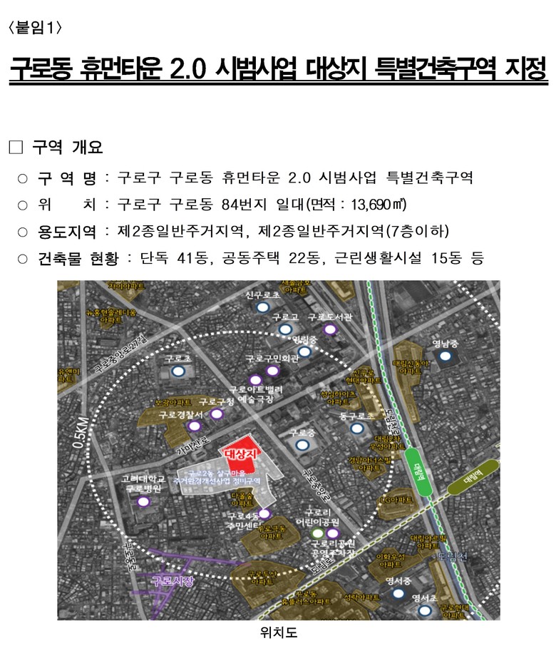 <구로동 휴먼타운 2.0 시범사업 대상지 특별건축구역 지정>