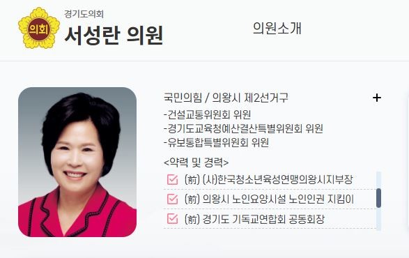 경기도의회 서성란 의원 홈페이지 캡쳐본.