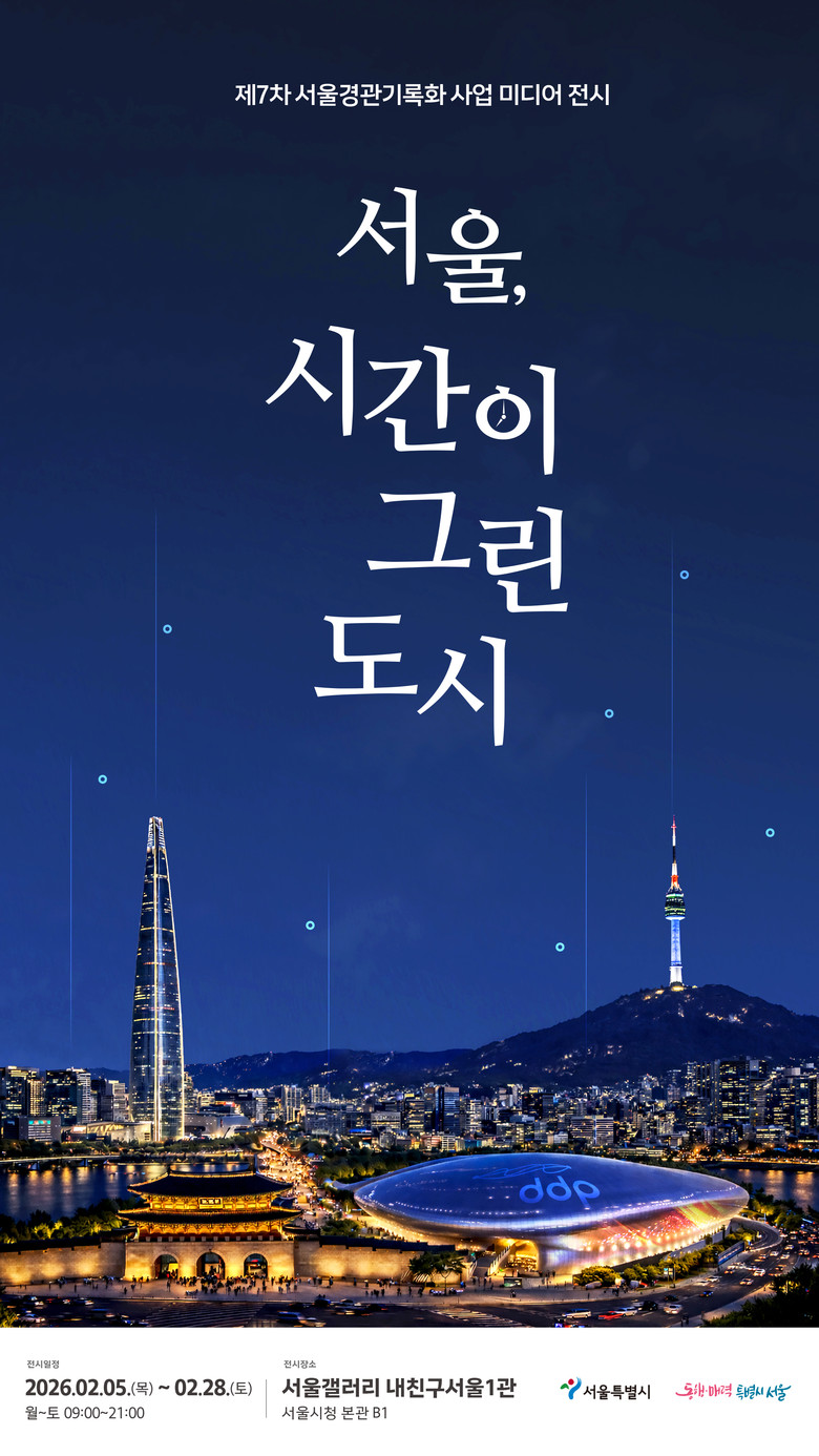 서울시는 1995년부터 축적해 온 도시의 역동적 변천사를 집대성하여 제7차 경관기록화 전시회 「서울, 시간이 그린 도시」를 2월 5일(목)부터 ‘서울갤러리 내친구서울 1관(서울시청 지하 1층)’에서 진행하고 있다.