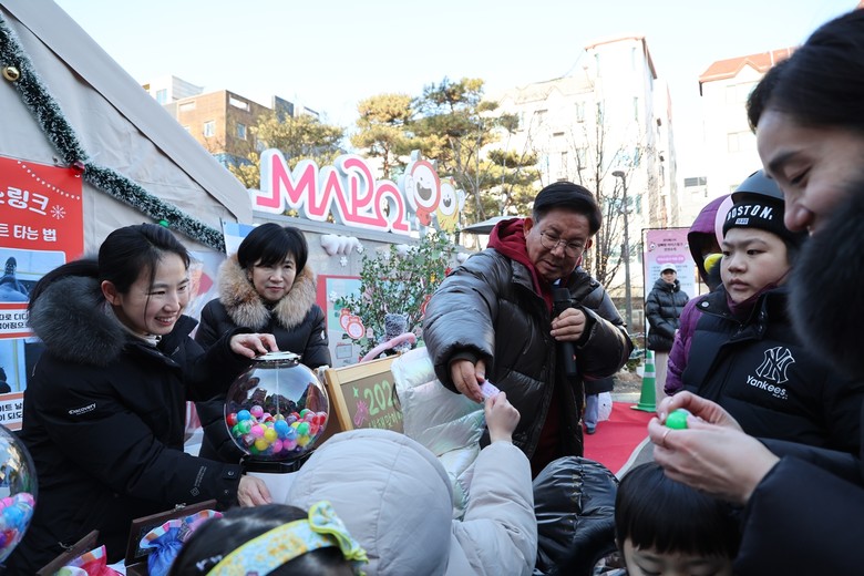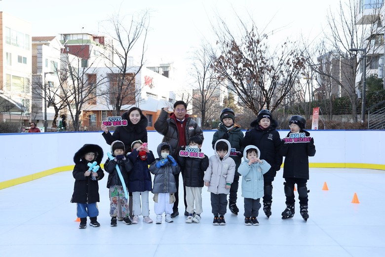 이날 행사는 ‘엄빠랑 아이스링크’를 이용한 어린이와 보호자 40여 명이 함께했으며, 박강수 마포구청장은 아이들에게 새해 인사를 전하며 가족과 함께하는 시간의 소중함을 전했다.