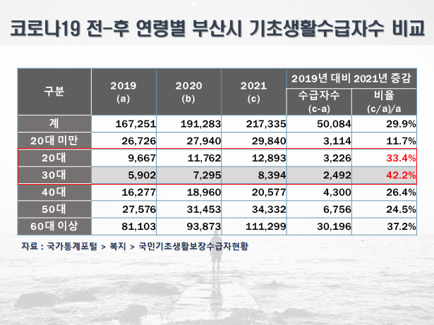 ·김태효 의원, 코로나19가 부산시 기초생활수급자 수 증가에 영향미쳐...