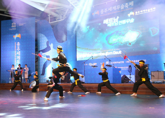 먼저 축제 첫날인 22일 식전행사로 주빈국 문화공연에 이어 개막행사로 우륵국악단, 충주시립택견단, 청주시립무용단, 참가국 무술시연 등의 주제 퍼포먼스가 펼쳐졌다.