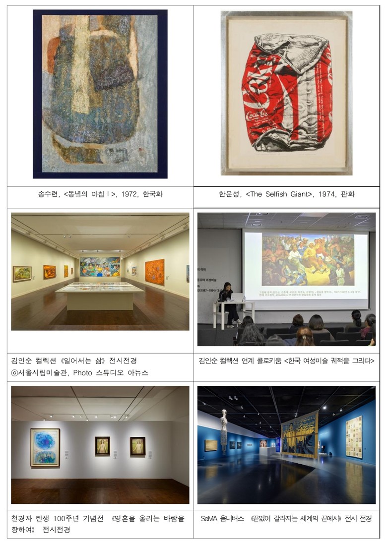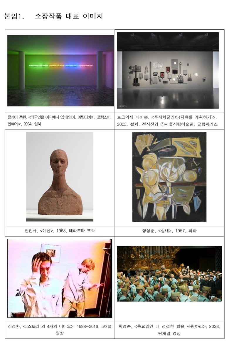 서울시립미술관은 ‘▲ 국내외 동시대 주요 작가 작품 집중 확보 ▲ 기존 컬렉션의 한국미술사적 결락 보완 ▲ 신진작가 대표작 적극 수집 ▲ 컬렉션 장르별 균형 추구’ 정책하에 공공성과 동시대성을 아우르는 컬렉션을 지속 강화하고 있다.