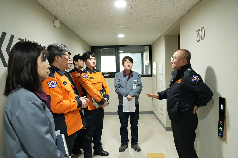 간담회 후 엄준욱 본부장은 소방시설, 피난안전구역, 옥상층 인명구조공간 등 주요 시설에 대한 현장점검을 실시하고, 소방시설 관리 실태와 대피·대응체계 운영 상황을 점검했다.