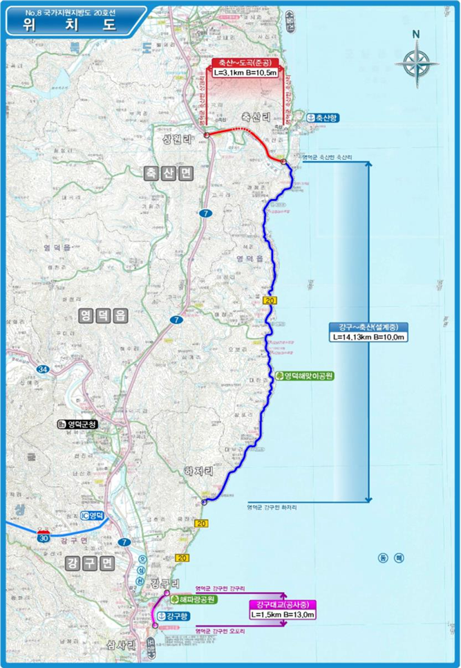 아울러 도는 영덕군 강구면 오포리 ~ 강구리 국지도 20호선 단절 구간인 해상교량 강구대교 건설공사를 총사업비 480억원을 들여 2026년 마무리할 예정이다.