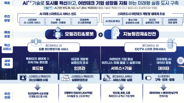 ▸ ICT 클러스터 기반 AI산업 플랫폼 스마트 알파시티 구축 [세계타임즈=대구 한윤석 기자] 대구광역시는 국토교통부가 올해부터 새롭게 추진한 ‘2025년 스마트도시 특화단지 조성사업’ 공모에 최종 선정됐다. 이번 공모에는 전국 6개 지자체가 참여했으며, 6:1의 경쟁률을 뚫고 대구가 선정되는 성과를 거뒀다.