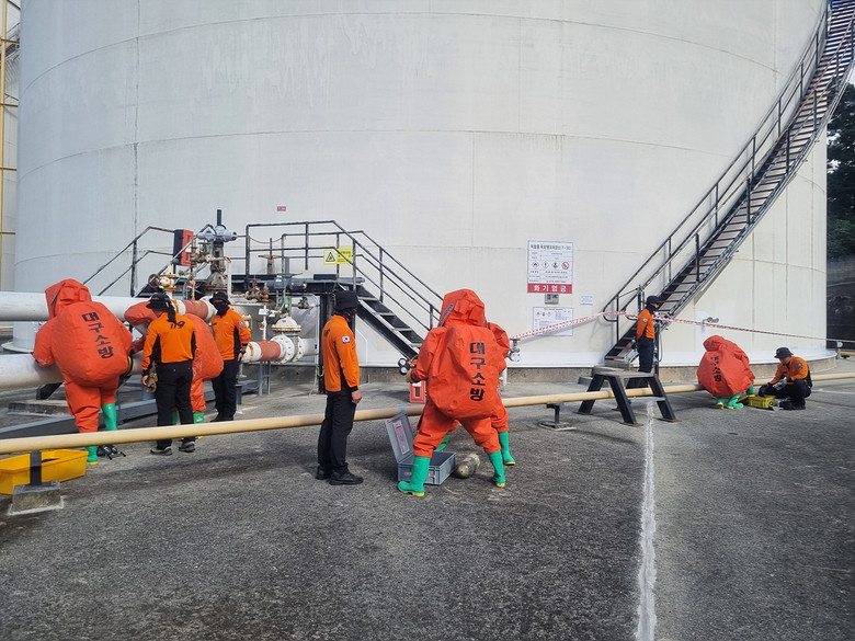 또한, 대량 위험물 누출 사고를 대비한 훈련도 함께 실시됐다. 대한송유관공사 영남지사에서 실제 발생할 수 있는 위험물 누출 사고를 시뮬레이션하고, 위험물 누출 배관 차단 및 흡수 조치, 현장 관리 등의 실습을 진행했다. 이를 통해 대원들은 대량 위험물 사고 발생 시 신속하고 효율적인 대응 능력을 강화하고 실전 경험을 쌓을 수 있었다.