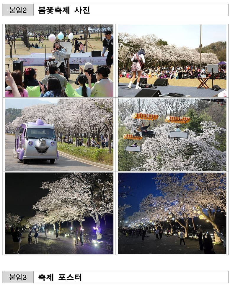 축제 기간동안 서울대공원은 낮과 밤 각기 다른 매력으로 시민들을 맞이한다. 낮에는 체험, 공연 등 풍성하고 다양한 즐길거리를 제공하고, 밤에는 친근한 동화 속 캐릭터가 등장하는 야간 조명을 설치하여 낭만적인 야간 벚꽃길을 감상할 수 있다.