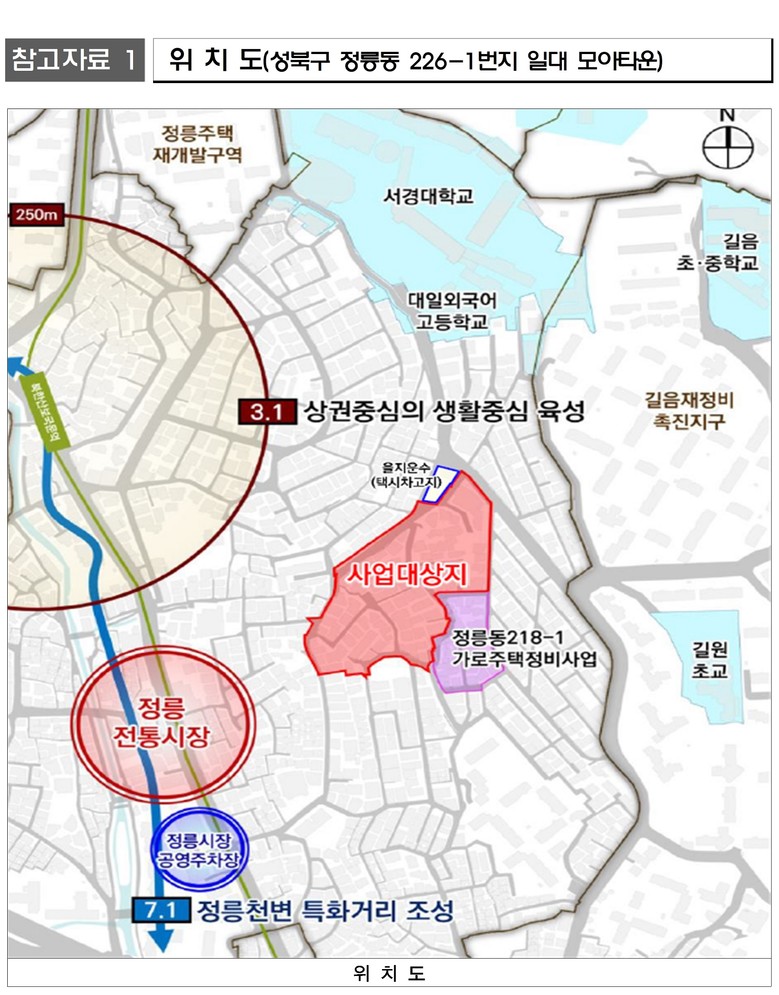 서울시는 12월 1일 제18차 소규모주택정비 통합심의 소위원회에서 ‘성북구 정릉동 226-1일대 모아타운’ 외 5건을 통과시켰다고 밝혔다.