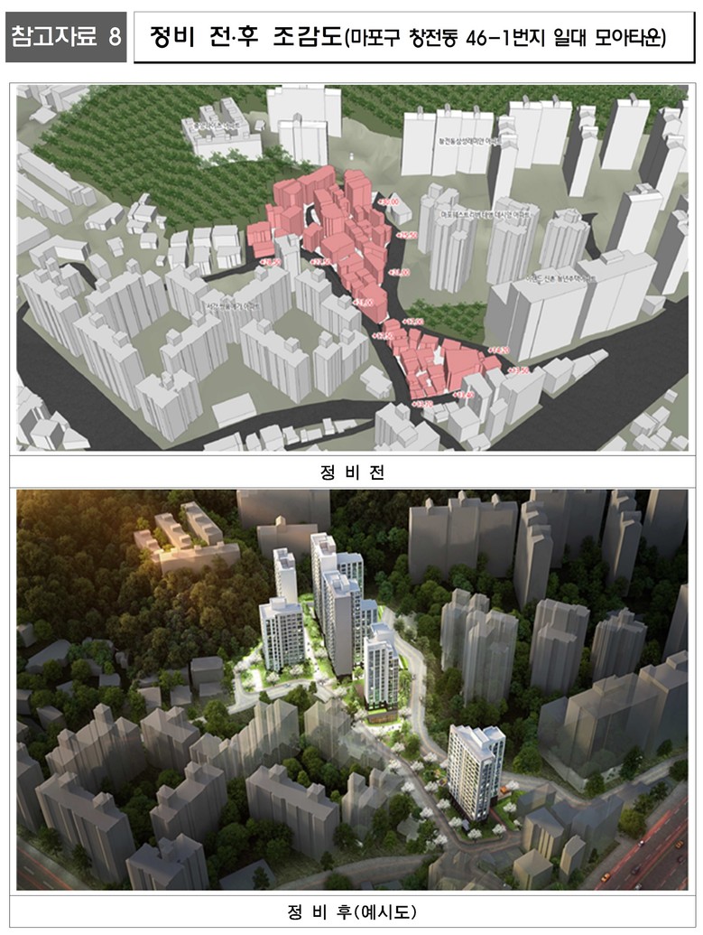 마포구 창전동 46-1번지 일대(면적 11,630㎡)는 이번 모아타운 관리계획(안) 통과로 향후 모아주택 1개소가 추진돼 총 298세대(임대 41세대 포함)의 주택이 ’32년까지 공급될 예정이다.