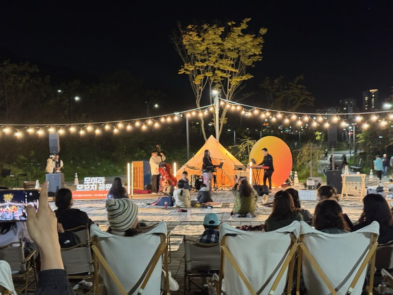 또 모꼬지공원에서 주민이 직접 참여한 음악회는 가을밤 정취를 더했고 관객들은 캠핑 의자에 앉아 피아노, 통기타, 색소폰 등 다양한 연주와 노래 공연을 즐겼다.