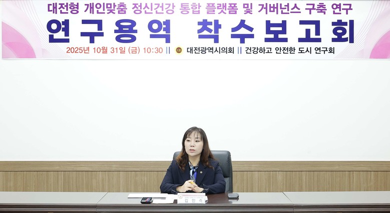 한편, 연구 용역은 대전시 정신건강의 현황·위험 요인을 진단하고, 지역 거버넌스와 통합한 정신건강 관리 서비스 모델을 설계하는 등 대전 시민 맞춤형 정신건강 관리 체계를 도출할 예정으로 이번 착수 보고회를 시작으로 12월에 용역이 마무리될 예정이다. 용역 결과는 향후 대전 시민 정신건강 관리 서비스 정책자료 등으로 활용될 계획이다.