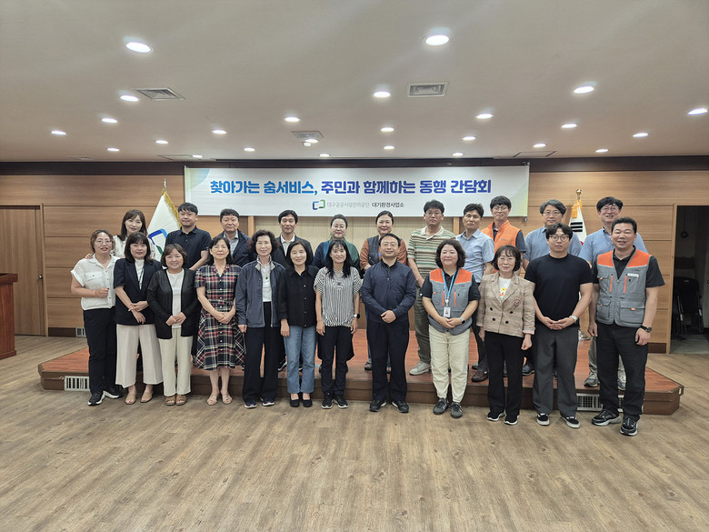 ▸ 주민과의 현장 소통으로 실효성 있는 개선 방안 모색 [세계타임즈=대구 한윤석 기자] 대구공공시설관리공단(이사장 문기봉) 대기환경사업소는 6월 20일(금), ‘찾아가는 숨 서비스’ 대상 아파트 주민과 관리사무소 직원을 초청해 지역 상생 협력 강화를 위한 간담회를 개최했다고 밝혔다.