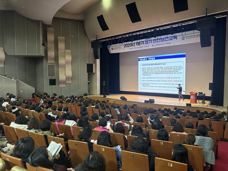 [대전 세계타임즈=이채봉 기자] 대전시교육청은 1월 13일부터 23일까지 총 6회에 걸쳐 대전평생학습관 어울림홀에서 공립학교 및 기관 소속 현업 근로자 2,378명을 대상으로 ‘2026년 1분기 정기 안전보건교육’을 실시한다고 밝혔다.