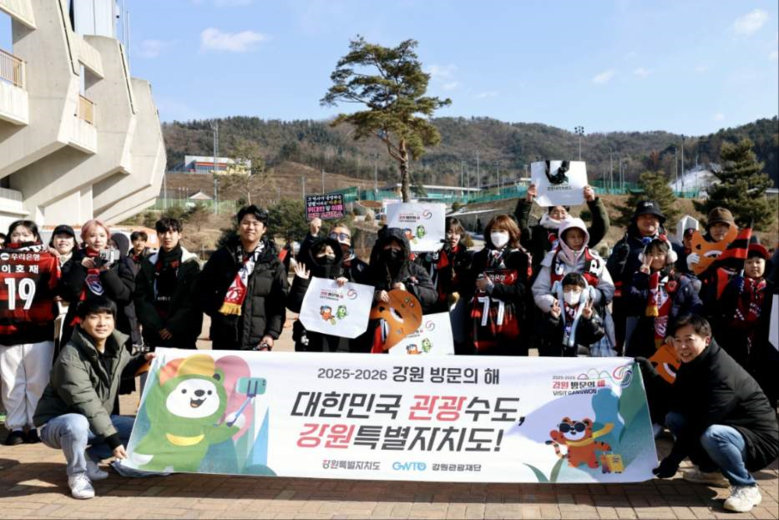 [강원도 세계타임즈=김민석 기자] 강원관광재단은 ‘2025-2026 강원 방문의 해’를 알리기 위해 2월 23일 강원 FC 홈경기 개막식에서 홍보 부스를 운영했다. 이번 부스는 스포츠와 관광을 결합한 스포츠관광 연계 사업의 일환으로 경기장을 찾은 관람객에게 강원 관광의 매력을 적극적으로 전파했다.