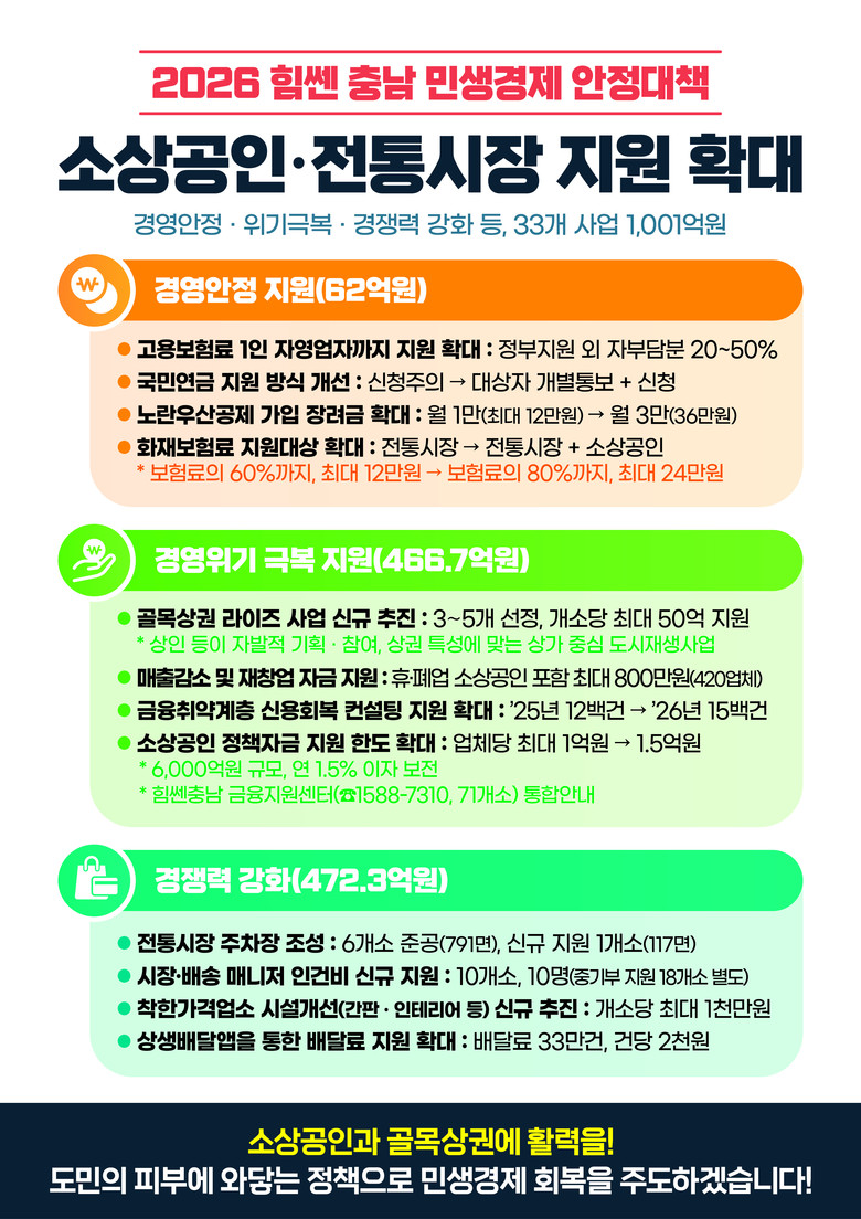 도는 이번 지원 확대가 소상공인과 전통시장이 다시 활력을 되찾고 골목상권이 지역 경제의 중심으로 자리잡는 마중물 역할을 할 것으로 기대하고 있다.
