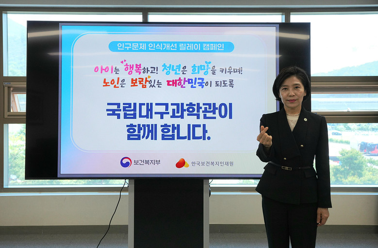 이난희 국립대구과학관장은 “인구문제는 미래 세대를 위한 중요한 과제이며, 과학 문화 기관으로서 사회적 역할과 책임을 다하기 위해 이번 캠페인에 적극 참여하게 됐다”며, “국립대구과학관은 앞으로도 인구문제와 관련된 교육·홍보 활동에 힘을 보태며 지역사회와 함께 해결 방안을 모색해 나가겠다”고 말했다.