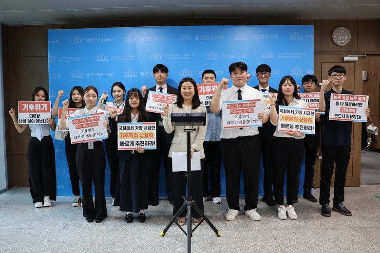 [세계타임즈 = 이채봉 기자] 국민의힘 김소희 의원 ( 비례대표 , 환노위 ) 은 7.30. 국회 기후특위 상설화를 위한 국회법 개정안을 대표발의하고 , 국회 소통관에서 기자회견을 통해 기후위기 문제만큼은 여야가 정쟁이 아닌 협치의 모습을 보여야 한다고 촉구했다 . 동 법안에는 국민의힘 환경노동위원회 및 당 기후특위 의원 전원을 비롯해 국민의힘 국회의원 55 명이 공동발의에 참여해 국회 기후특위 상설화 필요성에 대한 강한 의지를 보였다 . 또한 , 이날 기자회견에는 청년들이 동참해 기후위기 대응을 위한 국회의 제대로 된 역할을 함께 촉구했다 .