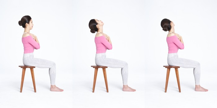 | ▲ [사진설명] 일자목증후군 예방에 좋은 ‘쇄골 잡아 앞뒤 스트레칭’ |