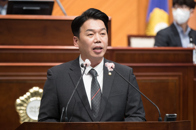 이어 한경봉 의원은 5분 발언을 통해 명분없는 수익사업으로 전락한 군산육상 태양광발전사업에 대한 해결을 촉구했다.