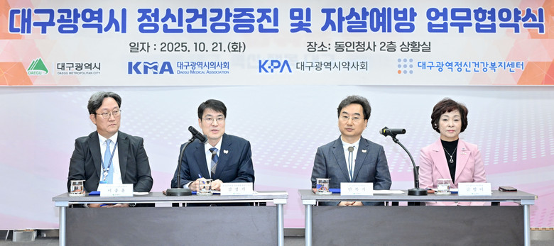 김정기 대구광역시장 권한대행 행정부시장은 “정신건강 문제는 누구나 겪을 수 있는 일반적인 문제로, 지역 공동체와 함께 고위험군을 조기에 발굴하고 지원 체계를 갖추는 것이 무엇보다 중요하다”며, “이번 협약식이 그 출발점이 되길 바라며, 대구 시민 모두가 나를 지키고 주변을 지키는 생명지킴이 역할을 해주시길 바란다”고 말했다.