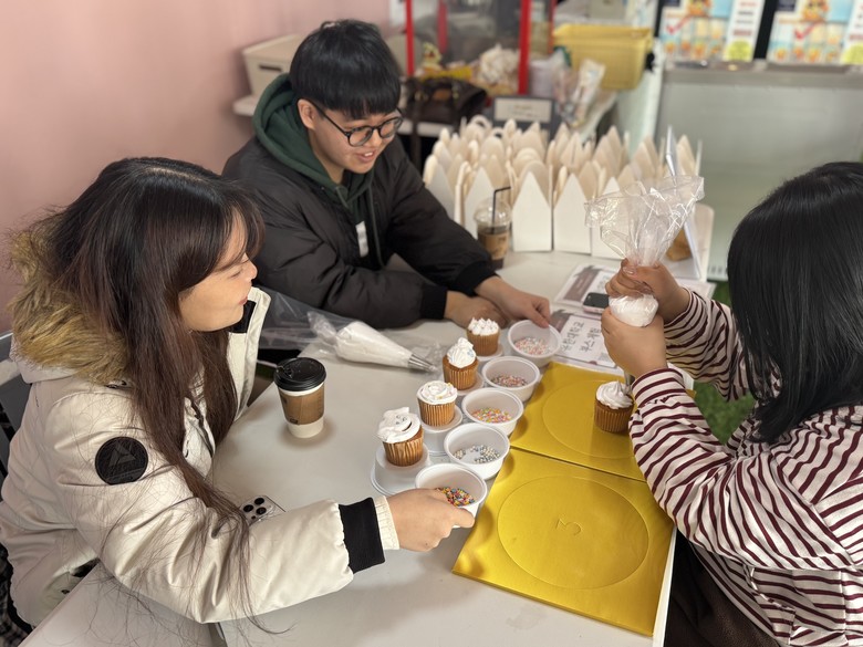 | ▲ 빙파니아 체험부스에서 유한대학교 학생들이 머핀만들기 프로그램을 진행하고 있다. |