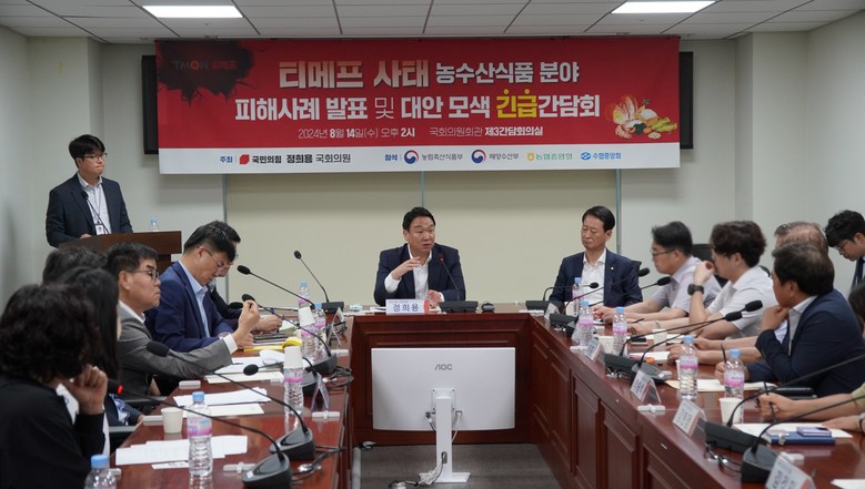 [세계타임즈 = 심귀영 기자] 국회 농림축산식품해양수산위원회 소속 국민의힘 정희용 국회의원 ( 경북 고령군 · 성주군 · 칠곡군 ) 은 14 일 ( 수 ) 오후 2 시 국회의원회관 제 3 간담회실에서 < 티메프 사태 농수산식품 분야 피해사례 발표 및 대안 모색 긴급간담회 > 를 개최했다 .