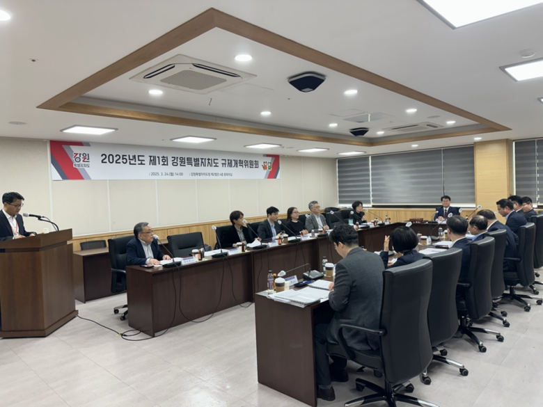 [강원도 세계타임즈=김민석 기자] 강원특별자치도(도지사 김진태)는 3월 24일(월) 오후 2시, 도청 제2별관 중회의실에서 「2025년도 제1회 강원특별자치도 규제개혁위원회」를 개최했다고 밝혔다.