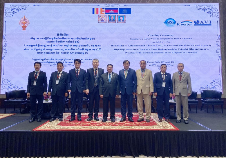 [세계타임즈 = 이영진 기자] 한국수자원공사(K-water, 사장 윤석대)는 4월 18일 캄보디아 프놈펜시(市) 현지에서 아시아물위원회(Asia Water Council)와 캄보디아 국회(의장 쿠온 수다리, Khuon Sudary)간 물 분야 협력 강화를 위한 ‘국가 물 비전 세미나(National Water Vision Seminar)’를 공동 개최했다.