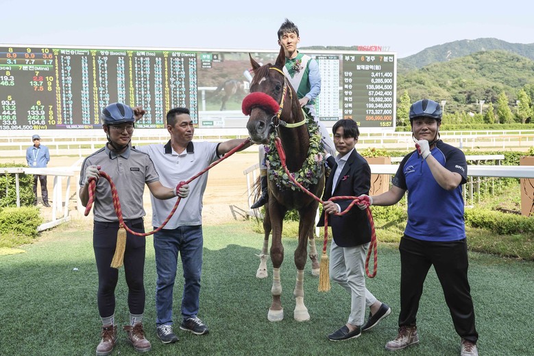[세계타임즈 = 송민수 기자] 5월 19일(일) 한국마사회(회장 정기환) 렛츠런파크 서울 제7경주로 열린 제34회 스포츠조선배(L, 2000m, 순위상금 2억원) 우승은 ‘강풍마’(한국산 4세 수말, 박재범 마주, 김동철 조교사, 조재로 기수)에게 돌아갔다. ‘강풍마’는 생애 첫 대상경주 우승.