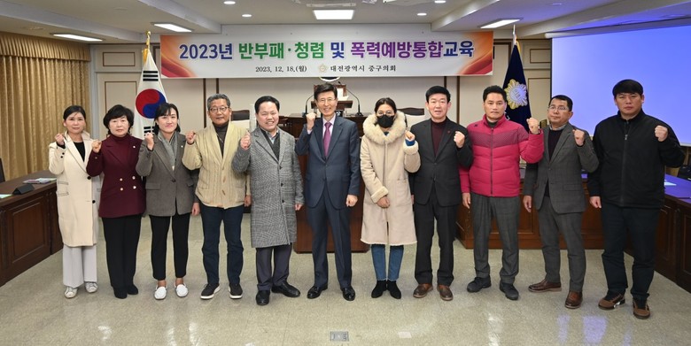 [중구 세계타임즈=이채봉 기자] 대전중구의회(의장 윤양수)는 18일 의회 본회의장에서 소속 의원과 의회사무국 직원을 대상으로‘반부패·청렴 및 4대 폭력 예방교육'을 실시했다.