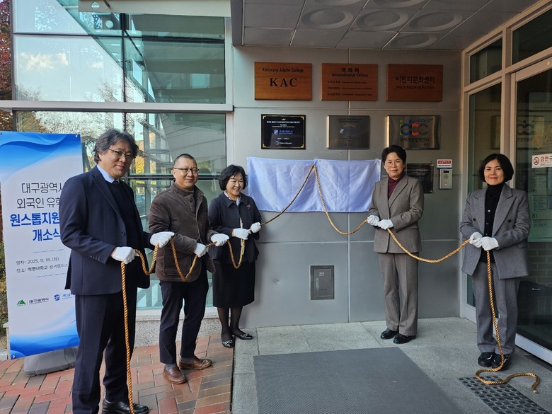 ▸ 대구시 RISE 사업 연계… 계명대 주관으로 유학생 학업 및 생활지원 강화 [세계타임즈=대구 한윤석 기자] 대구광역시는 11월 18일(화) 오후 2시 30분, 계명대학교 동영관에서 ‘대구광역시 외국인 유학생 원스톱지원센터’ 및 ‘거점 한국어센터’ 현판식을 가졌다.