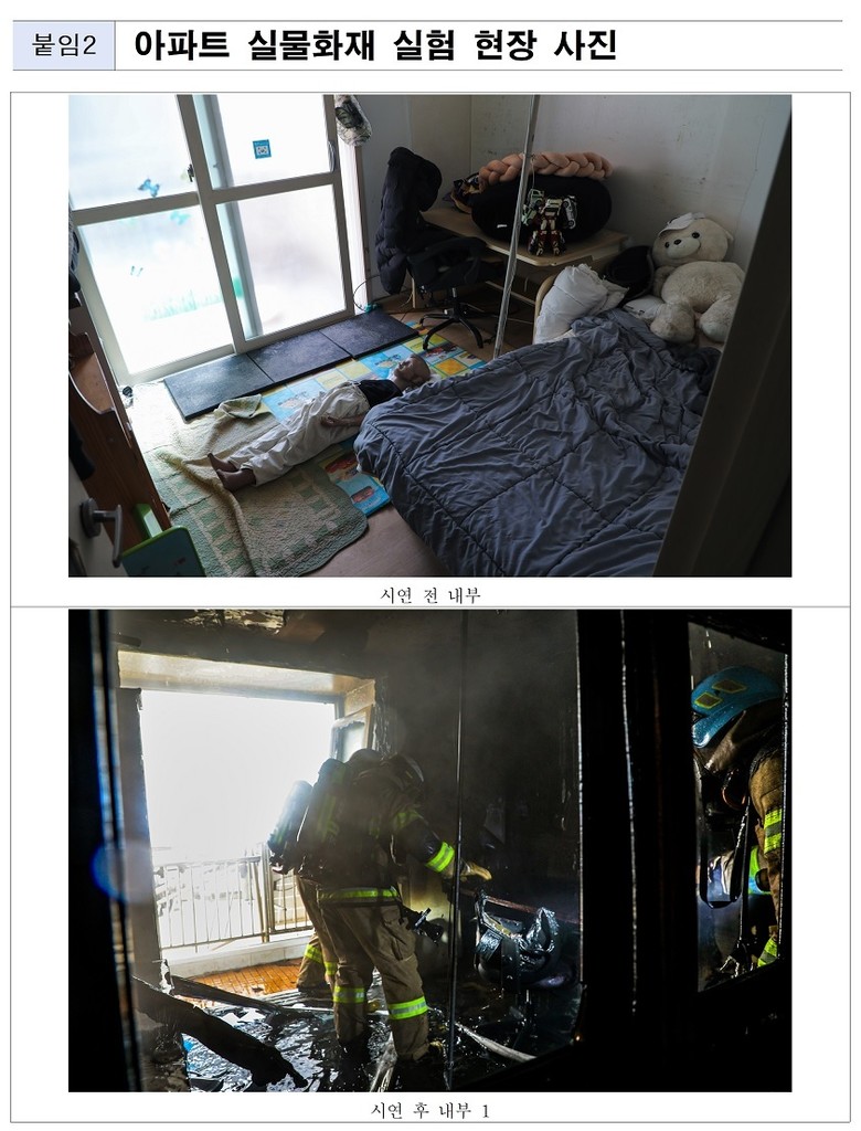 이번 실험은 지난해 10월 실시한 1차 실험에 이어 추진하는 것으로, 자동확산소화기의 주거공간 내 초기소화 효과 재검증과 최근 증가하고 있는 휴대용 리튬이온 보조배터리 화재 위험성을 확인하기 위해 진행되었다.