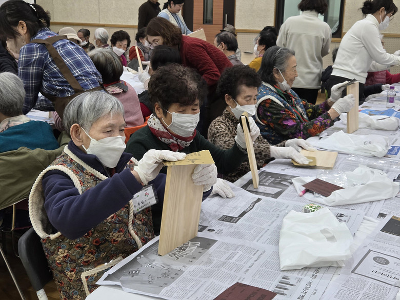 이어진 체험 시간에는 지속 가능한 자연 자원을 활용한 ‘원목 도마 만들기’가 진행되었다. 어르신들은 보조복지사들의 도움을 받아 사포질과 오일링 등 세밀한 수작업에 몰입하며, 세상에 하나뿐인 자신만의 도마를 완성했다. 한 참여 어르신은 “AI라는 어려운 기술을 쉽게 설명해 줘서 유익했고, 직접 손으로 도마를 만드니 마음도 즐거웠다”고 소감을 전했다.
