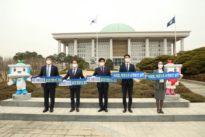 이어 여의도 국회의사당 앞에서 손피켓을 들고 ‘국회세종의사당 설치와 행정수도 완성’을 촉구하는 퍼포먼스도 펼쳤다.