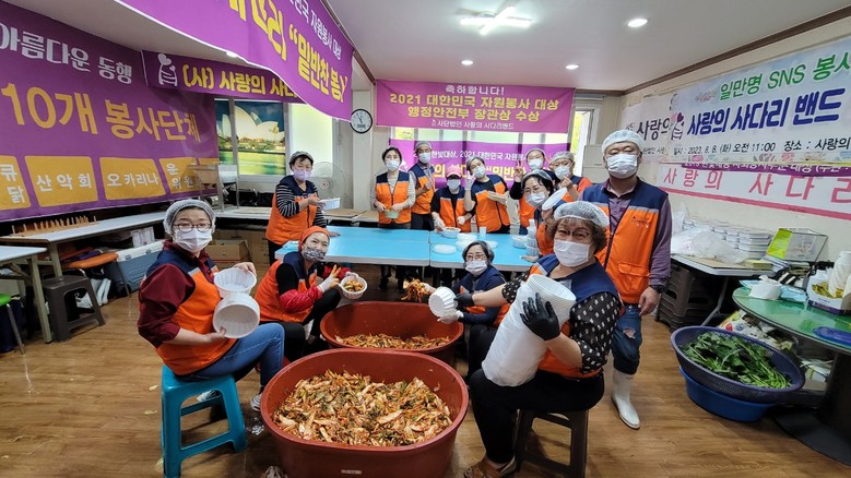송촌동 행정복지센터 김태훈 동장은 “매월 맛있는 밑반찬을 송촌동 저소득층 5가정에 지원해 주는 사랑의 사다리 밴드 봉사단체에 감사함을 전한다.”고 말했다.