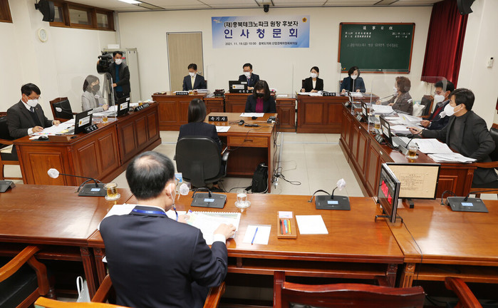 [충북=세계타임즈 이현진 기자] 충청북도의회 산업경제위원회(위원장 연종석)는 19일 노근호 충북테크노파크 임용후보자에 대한 인사청문회을 실시했다.
