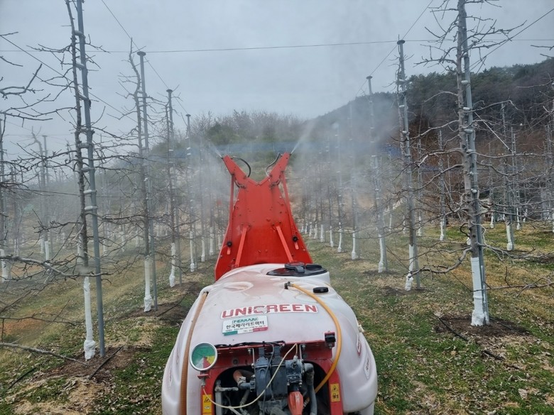 과수화상병은 세균병으로 사과·배 등 장미과 식물의 잎·꽃·가지·줄기·과일 등이 마치 불에 타서 화상을 입은 것과 같이 되어 조직이 검게 마르는 피해를 주며 고온에서 전파속도가 빠른 식물의 법정 전염병으로 발병 시 과원을 폐원해야 하는 심각한 과수병 중 하나다. 1차 방제는 사과와 배 신초 발아 전까지 약제 살포를 완료해야 하고, 2차 약제는 전체 과수원의 10~20% 꽃 개화 시, 3차 약제는 2차 약제 방제 후 5~7일 후 방제시기를 반드시 준수하여 살포해야 피해 예방 효과를 높일 수 있다.